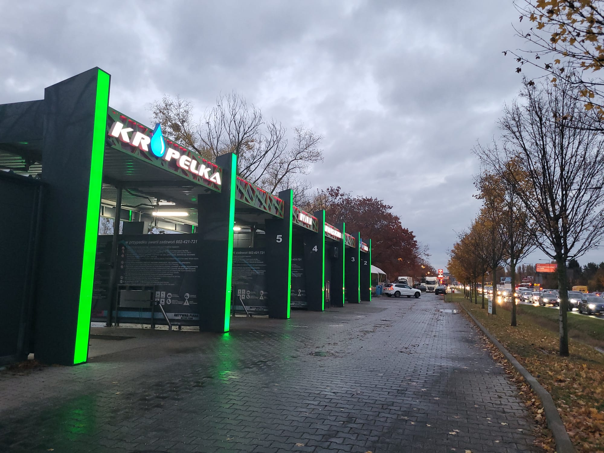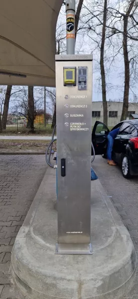 Zadaszone stanowisko odkurzaczy umożliwia komfortowe korzystanie z prania tapicerki, suszarki oraz czernidła do opon